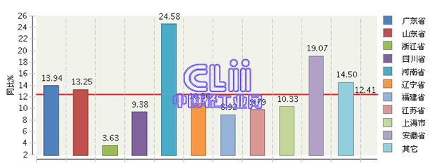 同期,上述10个地区中,河南的累计主营业务收入增速(下同)仍然保持了20%以上的快速增长;安徽、广东、江苏3个地区的增速超过了13%;其他5个地区的增速均低于全国家具行业平均水平(图7)。