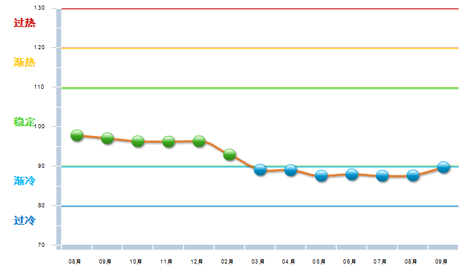 图4 2013.8----2014.9月工艺美术行业利润景气指数变化态势