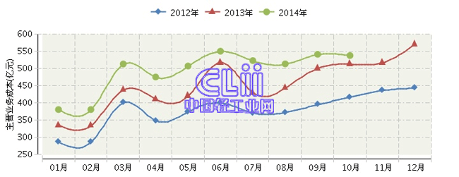 2014年1~10月全国家具行业主营业务成本累计同比增长12.09%