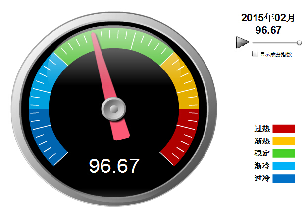 发布2015年2月中轻五金景气指数。2月,中轻五金景气指数96.67,本月行业景气指数与2014年年末相比有所提高,但继续保持在稳定区域中的中低水平。其中:五金主营业务收入景气指数94.47,五金出口景气指数为102.69,五金资产景气指数为95.00,五金利润景气指数为100.08。四项景气指数中除资产景气指数有所下降外,其它三项景气指数均不同程度的上涨,其中利润景气指数上涨相对较多,出口和利润景气指数均突破了100。