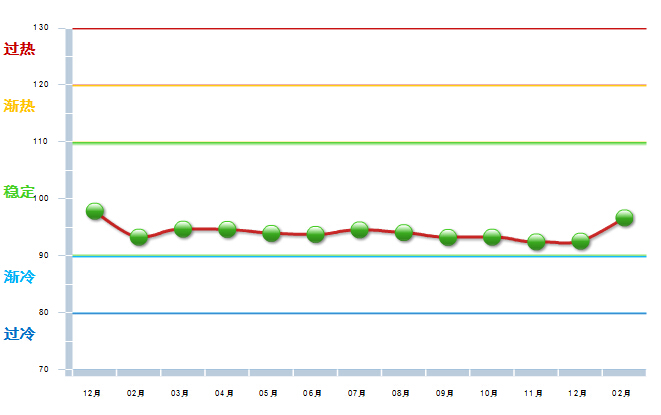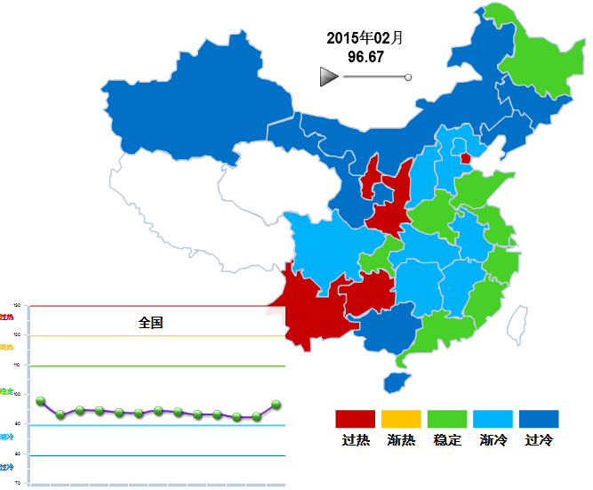 我国中西部地区和东北地区的行业景气指数多处于“渐冷”或“过冷”的两个区域,其中,“过冷”区域由之前的12个地区减少为7个, “渐冷”区域由之前的7个地区增加到8个,两区域的地区总数量较2014年12月有所减少。
