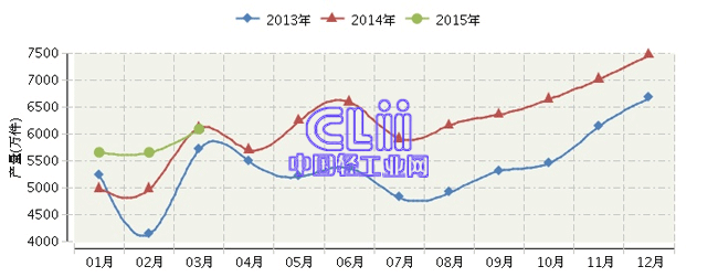 根据国家统计局公布数据:2015年一季度,全国家具行业累计完成产量17650.20万件,同比增长1.15%。其中:3月份家具产量同比下降6.71%。