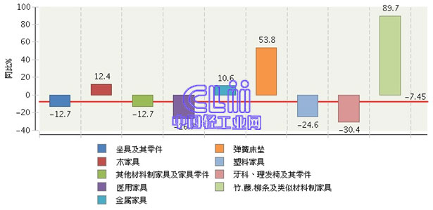 图4 2015年1月家具行业主要商品累计进口值增速情况