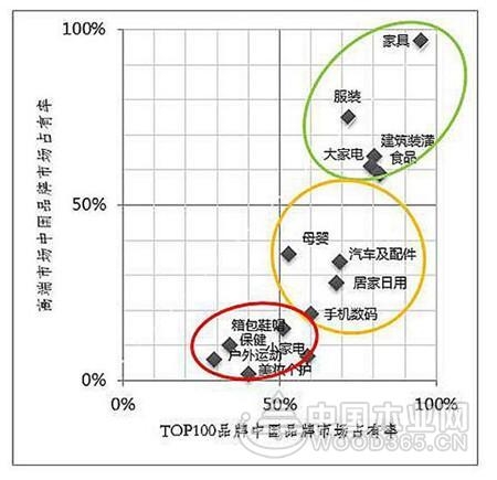 根据整体及高端市场表现,国货品牌可分为三组。一是国货品牌大众、高端市场双优——家具、服装、建筑装潢、大家电、食品5个消费大类;二是国货品牌大众市场占优——母婴、汽车与配件、居家日用、手机数码4个消费大类;三是国货有效供给不足——保健、户外运动、美妆个护、箱包鞋帽、小家电5个消费大类。