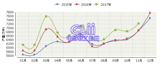 - 2017年1~11月全国家具行业产量累计2018/1/31 14:10:34
