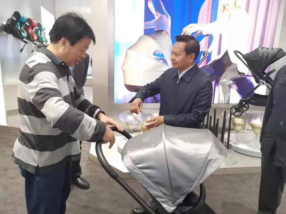 10月17日上午,张崇和等领导在中国玩具和婴童协会原理事长石晓光和企业相关负责人的陪同下来到江苏昆山,到好孩子儿童用品有限公司参观调研。在生产车间,张崇和体验e-PRIAM婴儿车斜坡测试。这辆车依靠传感器能并根据路况自行调整助力,实现上坡助力爬坡,下坡增加阻力减速。张崇和为这种人性智能设计点赞,并表示,一定要用更人性化、更注重细节的设计满足人民美好生活需要。在好孩子汽车儿童安全座椅检测认证中心,张崇和等领导认真观看儿童座椅动态撞击测试。他表示,保障孩子安全是儿童座椅的神圣使命,一定要用创新、安全成就“好孩子”。