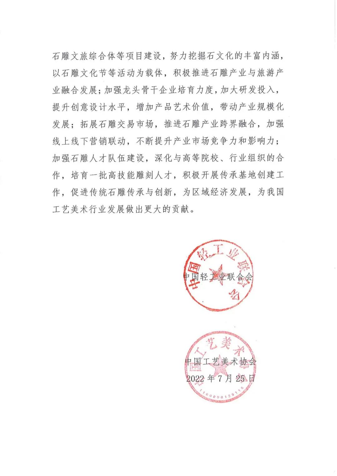 和中国工艺美术协会共同授予“中国石文化之都·青田”称号。2021年12月,经浙江省青田县人民政府申请,由