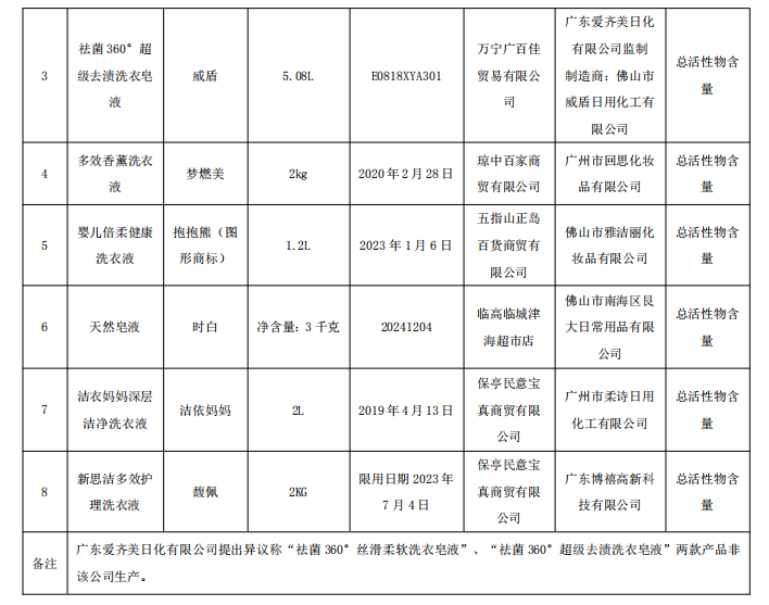 海南省市场监督管理局:8批次衣料用液体洗涤剂产品抽查不合格