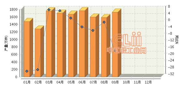 图1  2013年1~9月全国卫生陶瓷制品月度产量及同比