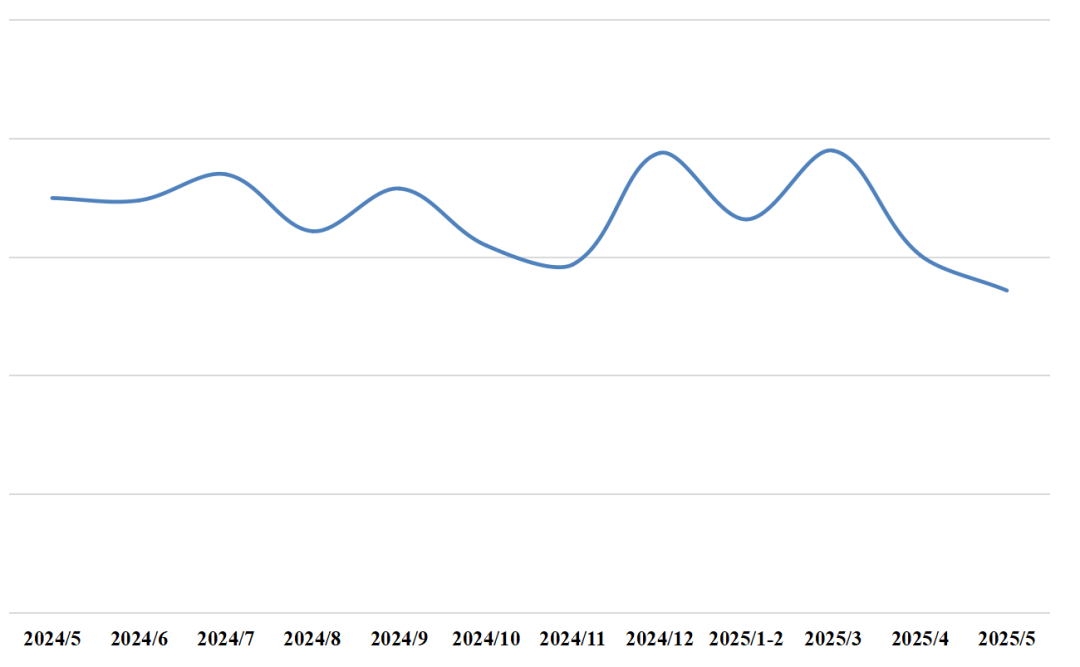 2025年1-5月, 照明行业规上企业工业增加值累计增速1.3%,较去年同期下降1.7个百分点。5月当月工业增加值增速较去年同期下降3.9个百分点,企业生产活动有所放缓。