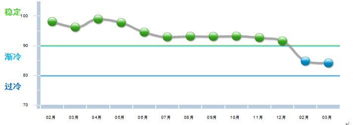 图 2013年2月~2014年3月食品行业利润景气指数变化态势