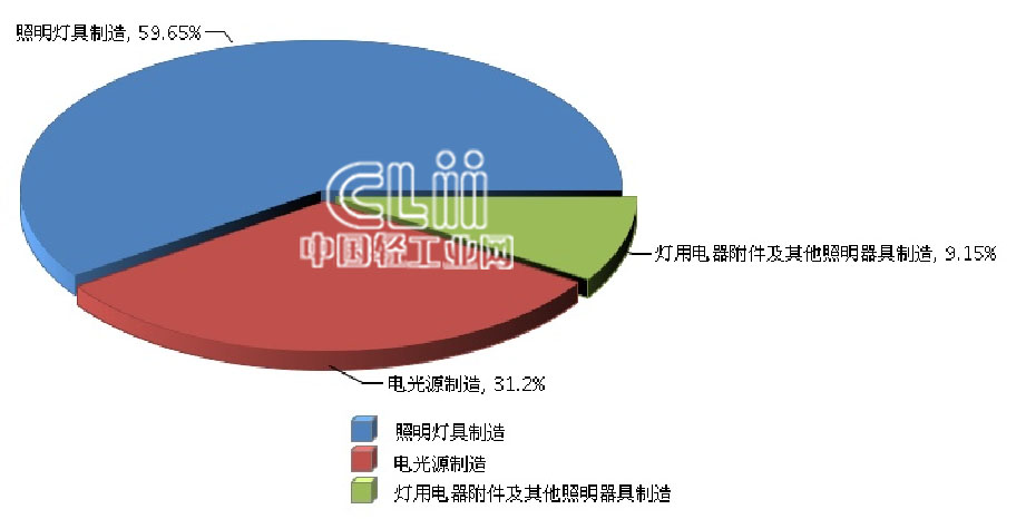从子行业主营业务收入贡献率分析,照明灯具制造累计主营业务收入是对全行业主营业务收入贡献率最大的子行业,占照明行业累计主营业务收入的59.65%;电光源制造累计主营业务收入占31.2%;灯用电器附件及其他照明器具制造占9.15%。