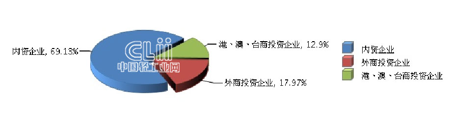 从企业注册类型分布情况看,内资企业占主导地位,且增速优势明显。2014年上半年,内资企业累计主营业务收入1284.78亿元,占全行业累计主营业务收入的69.13%,比重比去年同期提高了2.74个百分点。