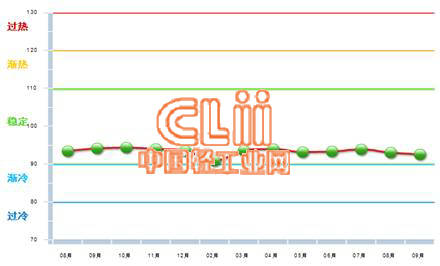 2014年9月中轻陶瓷景气指数92.53,处于稳定区间,较上月回落0.50,参见图1-1。