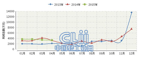 2015年1~4月,湖北照明行业累计利润总额14288.10万元,同比增长5.51%。其中:4月份完成利润总额3369.8万元,同比增长10.53%。