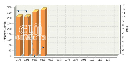 2015年1~4月,全国照明行业累计主营业务收入1244.63亿元,同比增长6.51%。其中: 4月份主营业务收入340.95亿元,同比增长3.09%。