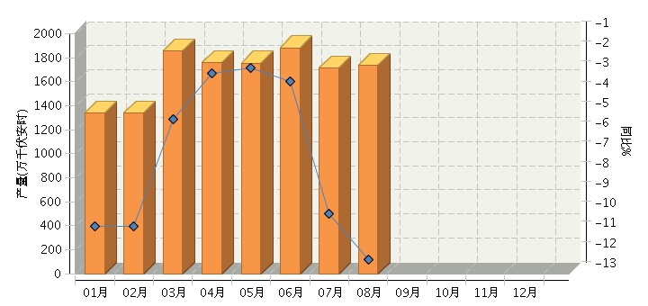 2015年8月全国铅酸蓄电池产量同比下降12.28%