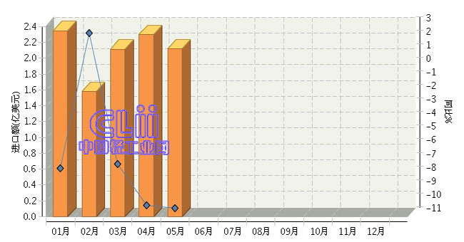 2015年1~5月我国进口家具累计同比下降7.27%