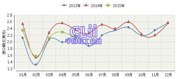- 2015年1~4月我国进口家具累计同比下2015/9/21 14:22:04