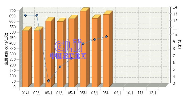 2015年1~8月全国家具行业主营业务收入累计同比增长8.87%
