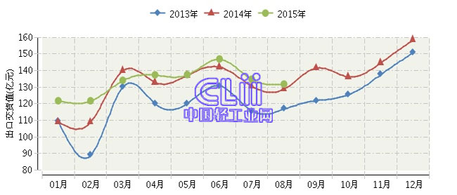 根据国家统计局公布数据:2015年1~8月,全国家具行业的累计出口交货值为1078.85亿元,同比增长2.05%。其中:8月份出口交货值同比增长0.75%。