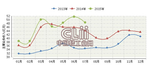 2015年江苏照明行业连续三年月度主营业务收入对比