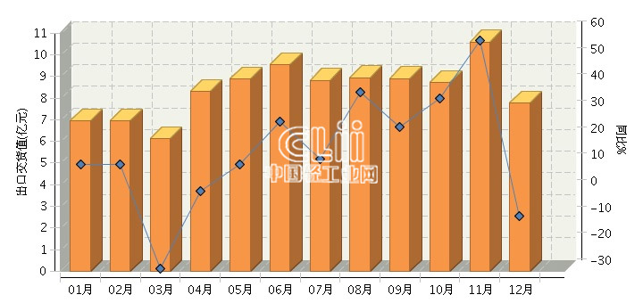 2015年1月~12月,福建电光源制造行业累计完成出口交货值100.32亿元,同比增长15.19%。其中:12月份完成出口交货值7.76亿元,同比增长-9.1%。