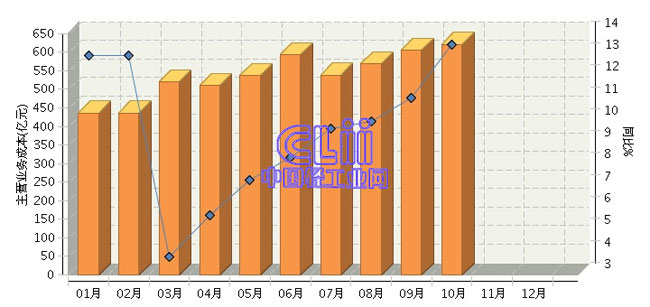 根据国家统计局公布数据:2015年1~10月,全国家具行业累计完成主营业务成本5367.55亿元,同比增长9.43%。其中:10月份主营业务成本同比增长13.48%。
