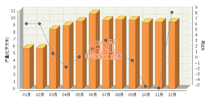 据统计局数据显示,2015年1~12月,全国陶瓷砖累计生产107.17亿平方米,同比增长0.76%。