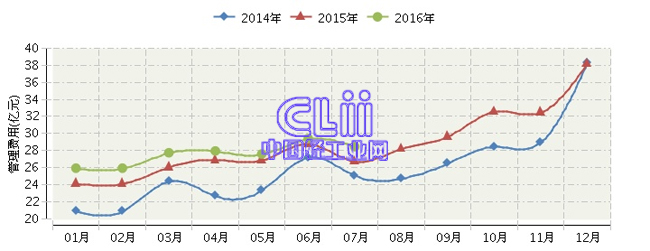 全国家具行业连续三年月度管理费用对比