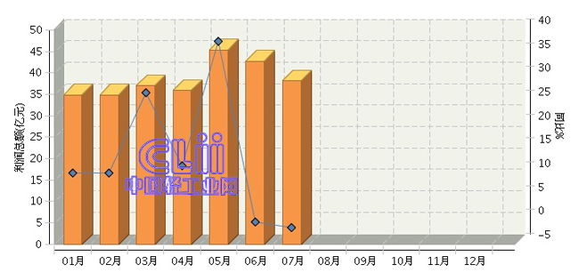 2016年1~7月全国家具行业利润总额累计同比增长12.39%
