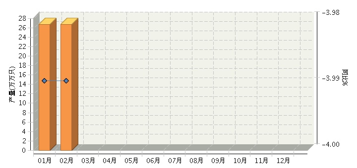 根据国家统计局公布数据,2017年1~2月,全国原电池及原电池组(折R20标准只)行业累计完成产量同比增长-3.99%。其中:2月份完成产量同比增长-3.99%。2017年全国原电池及原电池组行业月度产量及同比如下图所示。