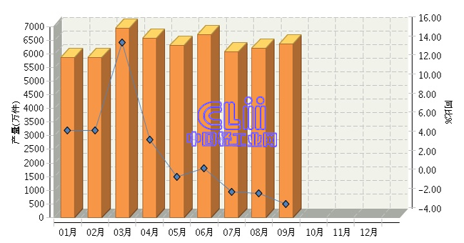 根据国家统计局公布数据:2016年1~9月,全国家具行业累计完成产量57492.48万件,同比增长1.95%。其中:9月份家具产量同比下降2.62%。