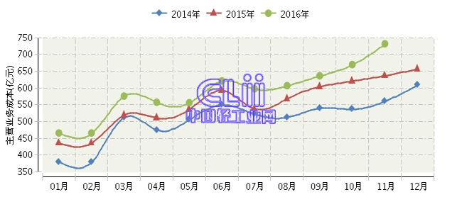 2016年1~11月全国家具行业主营业务成本累计同比增长8.46%