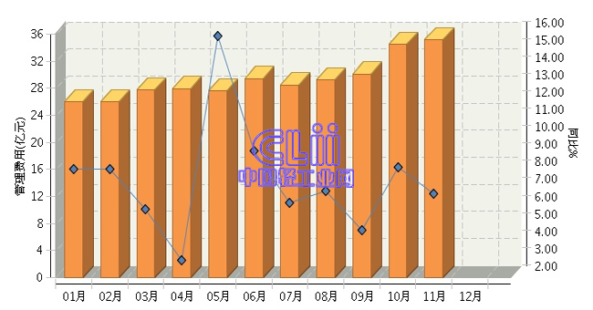 根据国家统计局公布数据:2016年1~11月,全国家具行业的累计管理费用为321.86亿元,同比增长7.50%。其中:11月份管理费用同比增长6.83%。