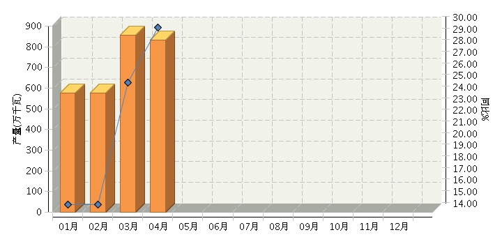 根据国家统计局公布数据,2017年1~4月,全国太阳能电池行业累计完成产量同比增长18.25%。4月份完成产量同比增长29.9%。2017年全国太阳能电池行业月度产量及同比如下图所示。