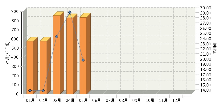 根据国家统计局公布数据,2017年1~5月,全国太阳能电池行业累计完成产量同比增长20.06%。5月份完成产量同比增长20.61%。2017年全国太阳能电池行业月度产量及同比如下图所示。
