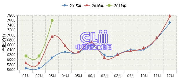 全国家具行业连续三年月度产量对比