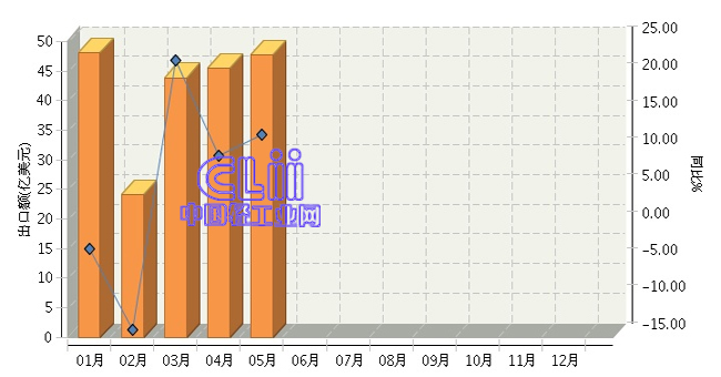 2017年1~5月我国家具行业出口累计同比增长5.90%