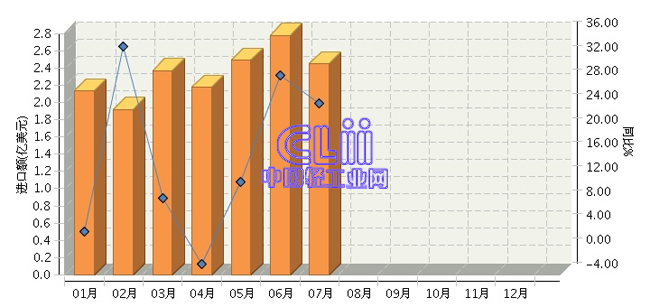 2017年1~7月我国进口家具累计同比增长14.36%