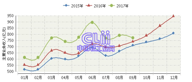 2017年1~9月全国家具行业主营业务收入累计同比增长11.14%