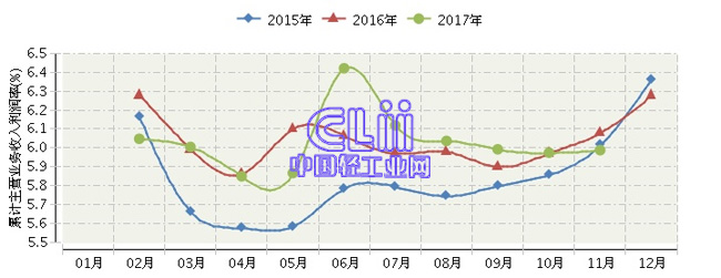 2017年1~11月全国家具行业累计主营业务收入利润率为5.99%