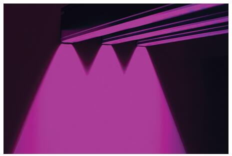 同时,园艺固态照明的市场潜力正在带动新的照明厂商进入细分市场。例如,Hubbell Lighting推出了使用660 nm红光LED和460 nm蓝光LED的NutriLED园艺照明产品系列(图2)。Hubbell新产品创新产品经理Tom Veltri表示,蓝光LED是植物营养生长阶段的关键,而红光LED可促进开花和结果。Hubbell正在使用二比一的红-蓝混合,Veltri表示这可服务于园艺市场最广泛的部分。