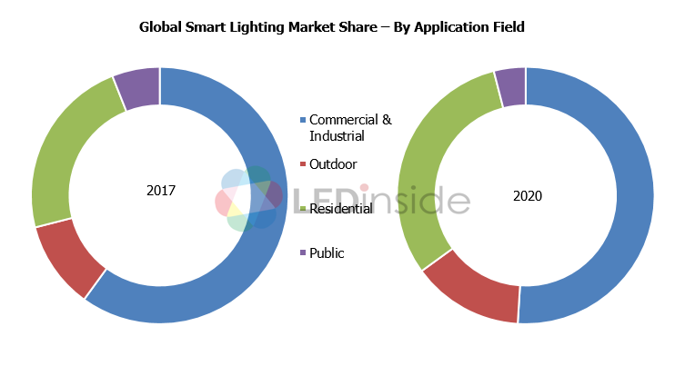 智能照明进入高速发展,工业及商业为最大应用场景