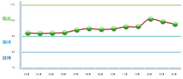相比于其他 普遍景气度偏低,景气指数多月在渐冷区徘徊的低迷状况,日化行业一枝独秀,一年以来均保持在稳定区间运行,本年前三月平均景气度较去年整体水平进一步提升。4月,日化行业景气指数达到97.70。