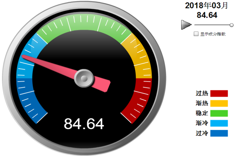 据中国轻工业经济运行及预测预警系统数据显示,2018年3月中国五金制品制造业景气指数为84.64,处在“蓝色”渐冷区间,较2月下降2.49点。