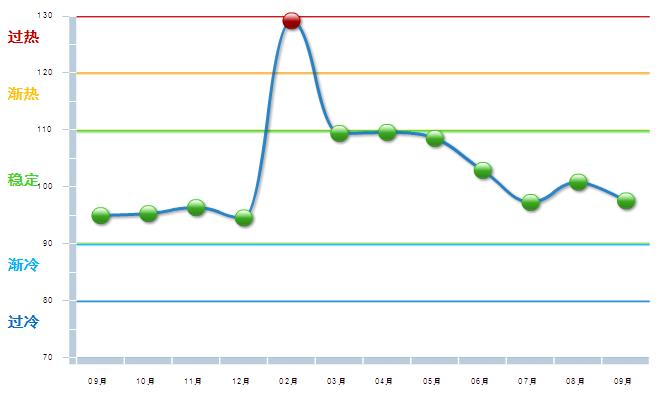 利润持续承压,利润指数已跌入“渐冷”区间。其中:营业收入景气指数94.97,位于“稳定”区间,环比下降1.74点,同比上升16.07点;利润景气指数86.30,位于“渐冷”区间,环比下降3.24点,同比上升5.27点;出口景气指数97.55,位于“稳定”区间,环比下降3.28点,同比上升2.58点;资产景气指数93.65,位于“稳定”区间,环比下降0.23点,同比上升3.67点。