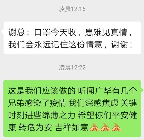 患难见真情。每一个口罩都来之不易,每一位兄弟都值得关爱。道路阻断,关怀不断!喜德瑞要让所有经销商伙伴和员工兄弟知道,在“喜悦携手,德瑞同行”的道路上,一个都不能落下,一个都不能少。疫情无情,我们共抗“疫”!
