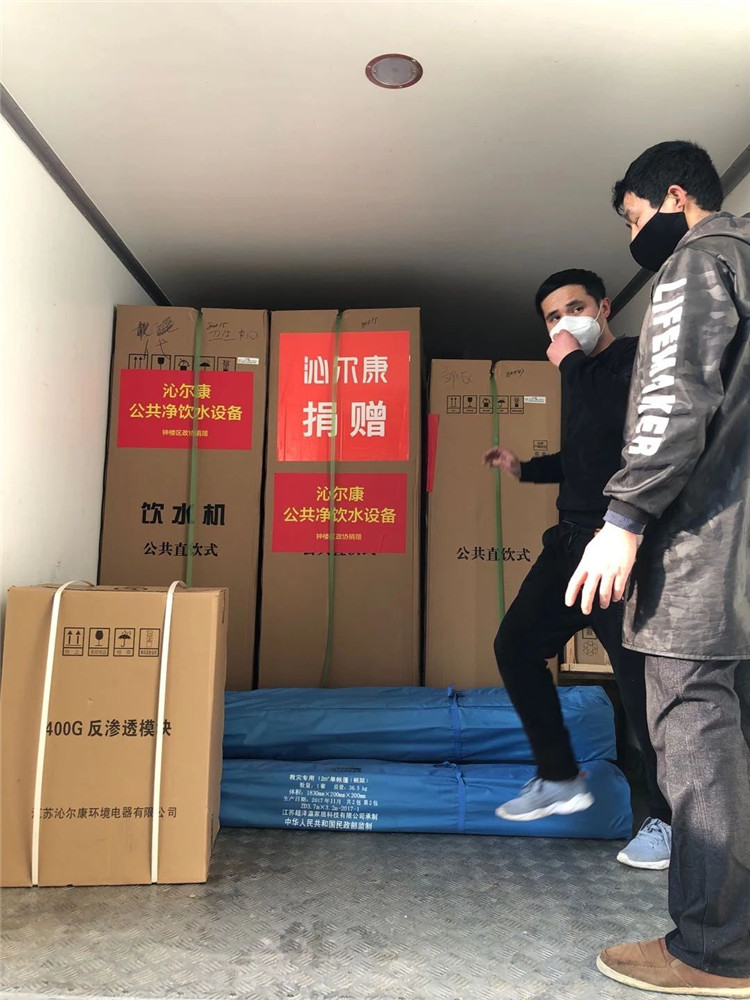 28日,沁尔康运维部的售后工程师在充分做好防护措施的前提下,逐个斟察了10家受赠单位的安装场所,并根据现场实际状况做出了设备和安装方案。29日上午,10套净水设备随钟楼区政协慰问物资一道,送到了每个受赠点。