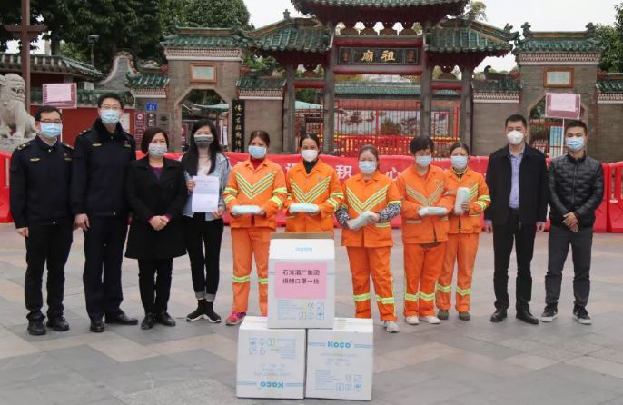 自新冠疫情发生以来,石湾酒厂集团高度关注前线抗击疫情的最新进展,面对疫情严峻形势,迅速响应政府对疫情防控工作的有关决策部署和工作要求,多项举措并举开展严防严控,及时成立了以党委书记和高层领导为组长的疫情防控领导小组,探讨如何用好现有资源力所能及地做好防疫公益服务。当前新型冠状病毒感染的疫情防控形势仍然严峻,坚守在一线的“城市美容师”需要可靠的安全防护。2月10日下午,广东石湾酒厂集团迎来复工复产首日,便通过“石湾玉冰烧基金”向禅城区城管执法局捐赠5000个一次性医用口罩,为奋战在疫情防控一线的环卫工人提供防控安全保障。